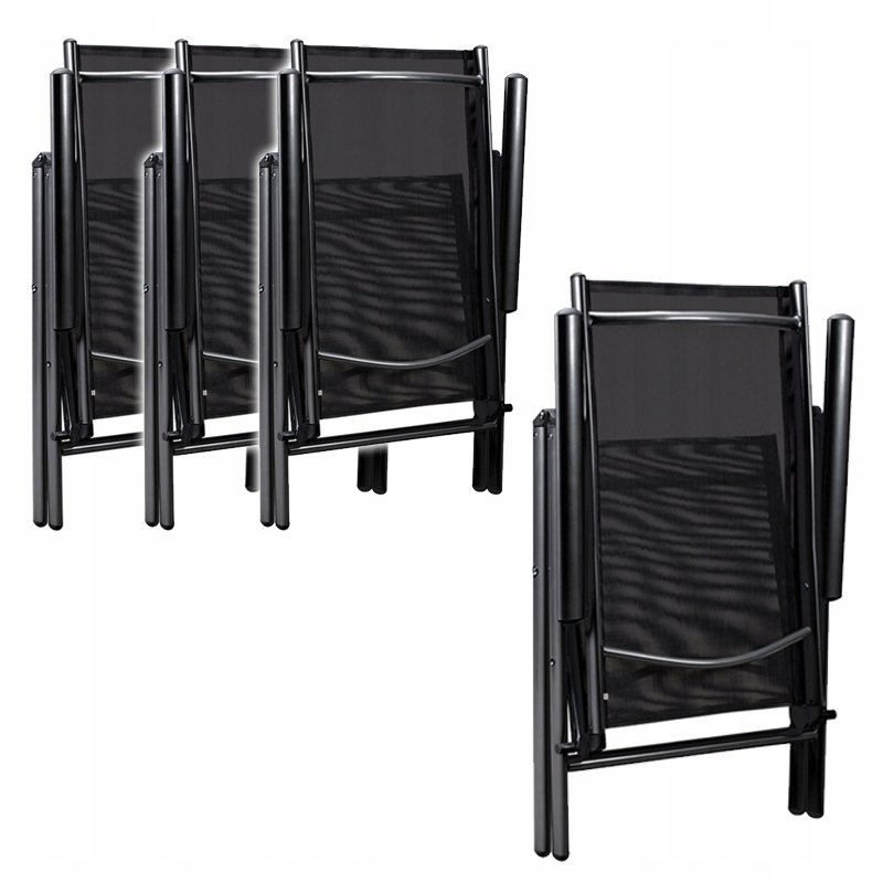 Набор завершен 6 удобными, складными стульями с регулируемой спинкой, изготовленной из прочной и воздушной сетки текста, обеспечивая комфорт даже во время длительного использования. Возможность складных стульев является огромным преимуществом - легкое хранение и гибкое использование в каждом пространстве.