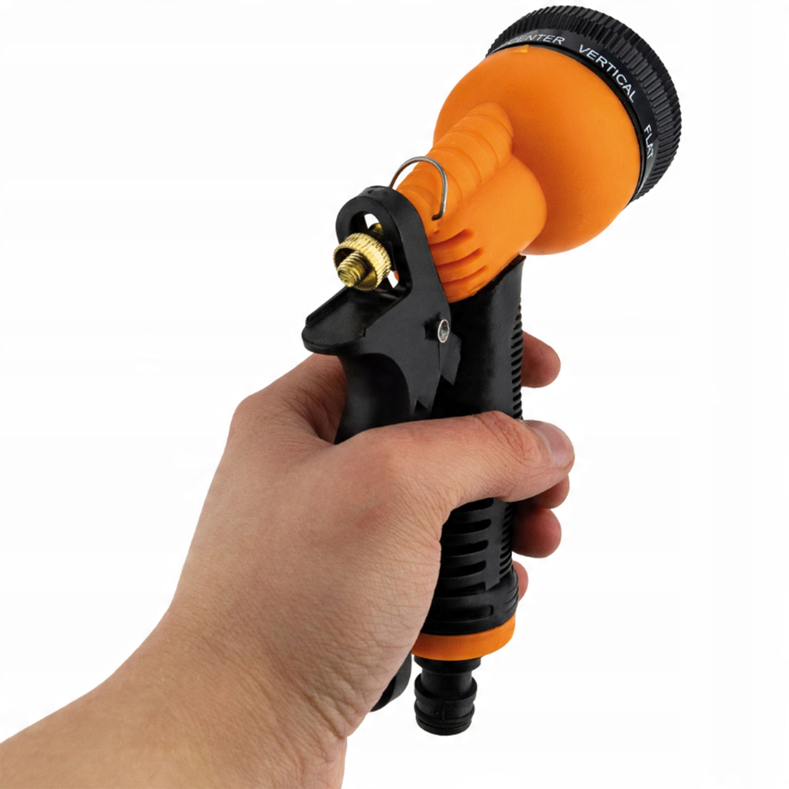 ✅Пистолет оснащен удобной нескользящей ручкой и фиксатором слива воды без необходимости постоянно нажимать на ручку — достаточно сдвинуть металлический крючок в пистолете.