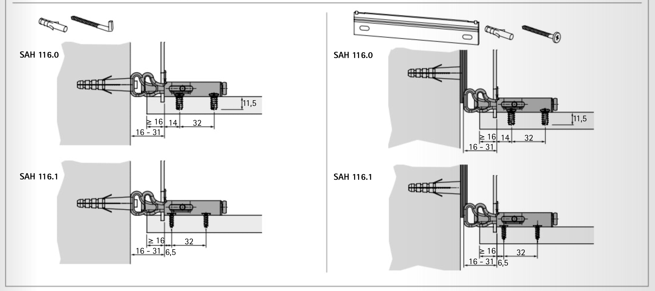 SAH 116 - Подвеска кабинета, твердый, набор (P+L) Hettich