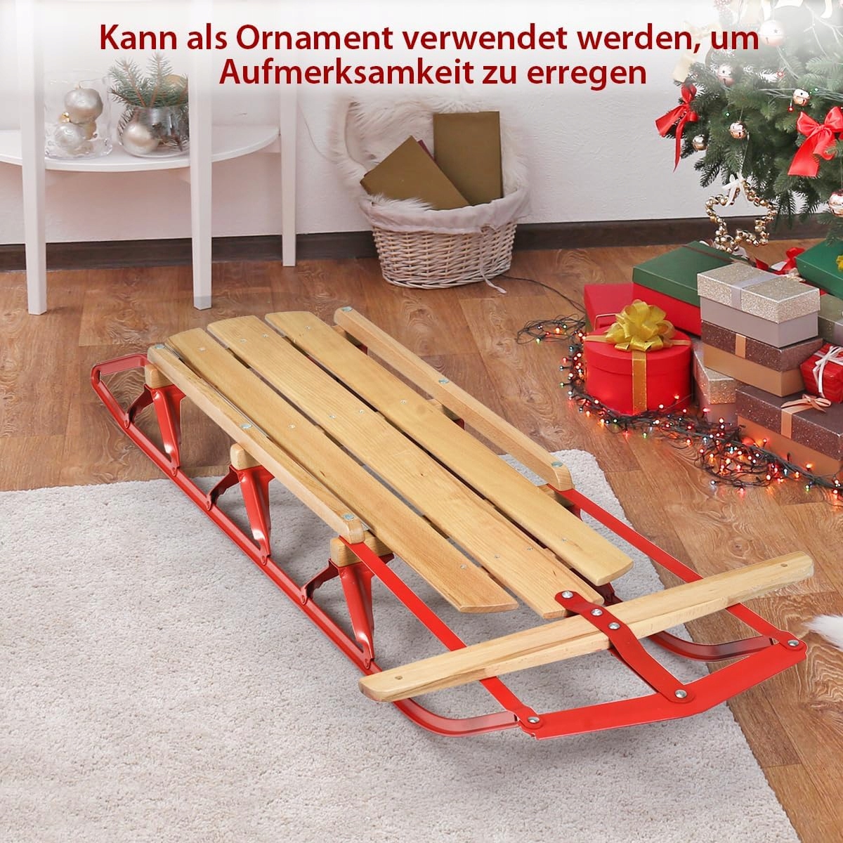 - Надежность и устойчивость. Изготовленные из прочной арочной древесины со стальными полозьями с порошковым покрытием, эти деревянные металлические салазки достаточно устойчивы, чтобы выдержать 150 кг.