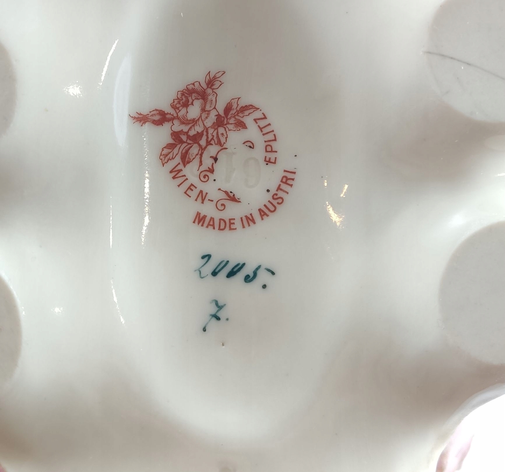 Мы предлагаем уникальный фарфор, который из Эрнста Уэлисса Кунста Мануфактура, Порзеллан и Фейс Фабрик, расположенный в ходе-теплце (сегодняшняя чешская Республика). Оригинальный продукт 1910–1918 гг. Модель с характерной, асимметричной линией и сложным украшением является частью стиля зрелого отделения.