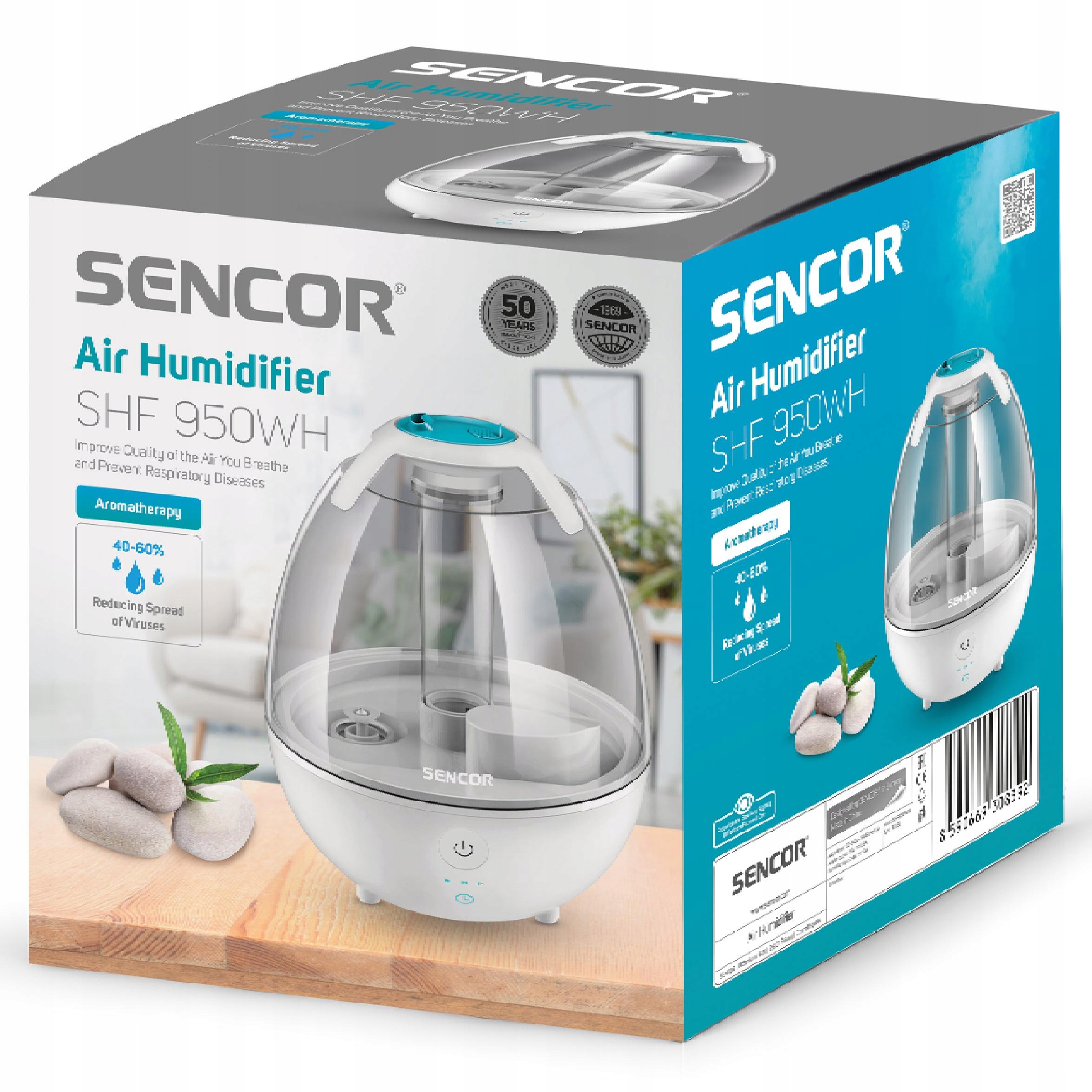 Sencor SHF 950WH Ультразвуковой увлажнитель характеризуется низким потреблением энергии и тихой работой. Однако это не единственные преимущества. Эффективно увлажняет воздух не только зимой в течение сезона отопления, но и летом, во время использования кондиционера. Влияние регулярного использования заключается в улучшении качества воздуха и лучшей атмосферу.