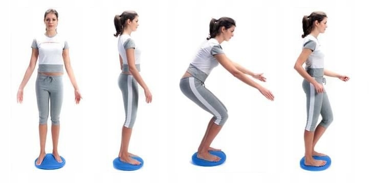 Встаньте на подушку одной ногой. Старайтесь сохранять равновесие. Как только вы научитесь этому, начните делать небольшие махи другой ногой вперед, в сторону и назад. Это упражнение улучшит стабилизацию голеностопных и коленных суставов. Это также улучшит баланс и координацию тела.