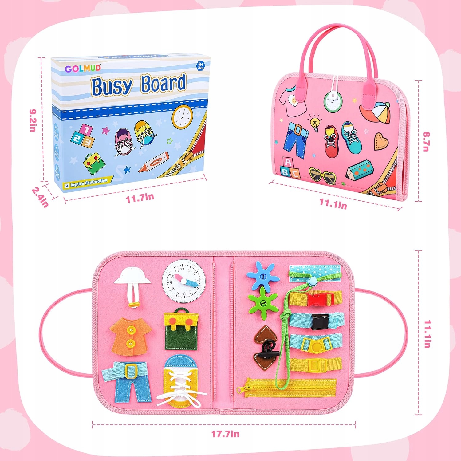 Доска для занятий для малышей Наша доска для занятий для малышей помогает малышам изучать и развивать основные повседневные навыки, такие как одевание, завязывание шнурков, застегивание пуговиц, определение времени, цифр, букв, форм, цветов и многого другого. Это помогает развивать у детей навыки восприятия, одновременно поддерживая развитие их мелкой моторики.