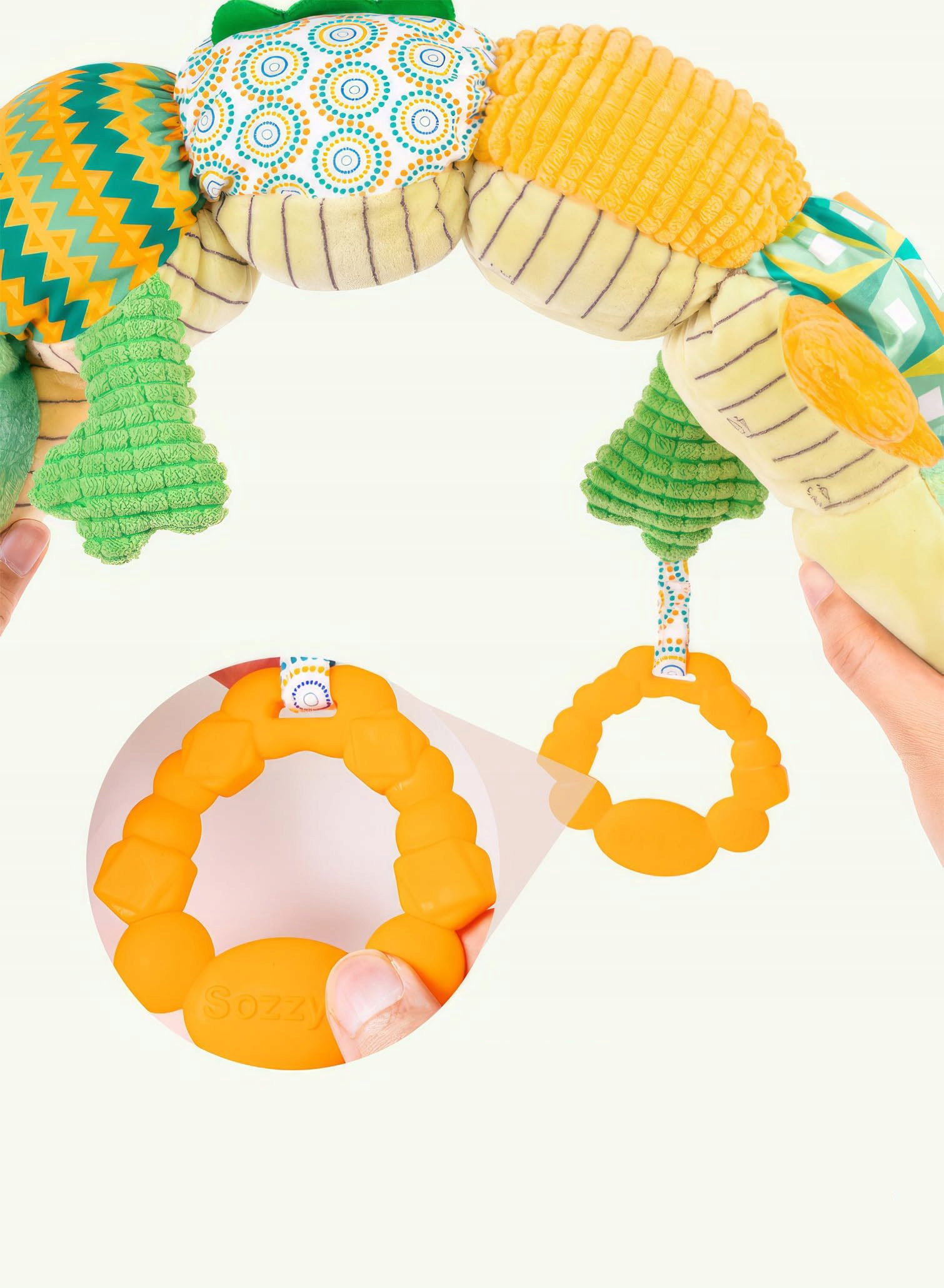 Визуальные и тактильные удовольствия: Игрушки для младенцев имеют восхитительные цвета, очаровательные узоры и ряд материалов, текстур и морщин, чтобы поддержать развитие вида и прикосновения вашего ребенка. Кроме того, благодаря очаровательной апельсиновой ручке, маленькие руки вашего ребенка останутся активными, увеличивая моторные навыки и координацию!