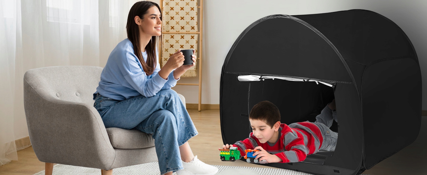 - Эта сенсорная палатка великолепна не только для детей, но и место отдыха для взрослых.
