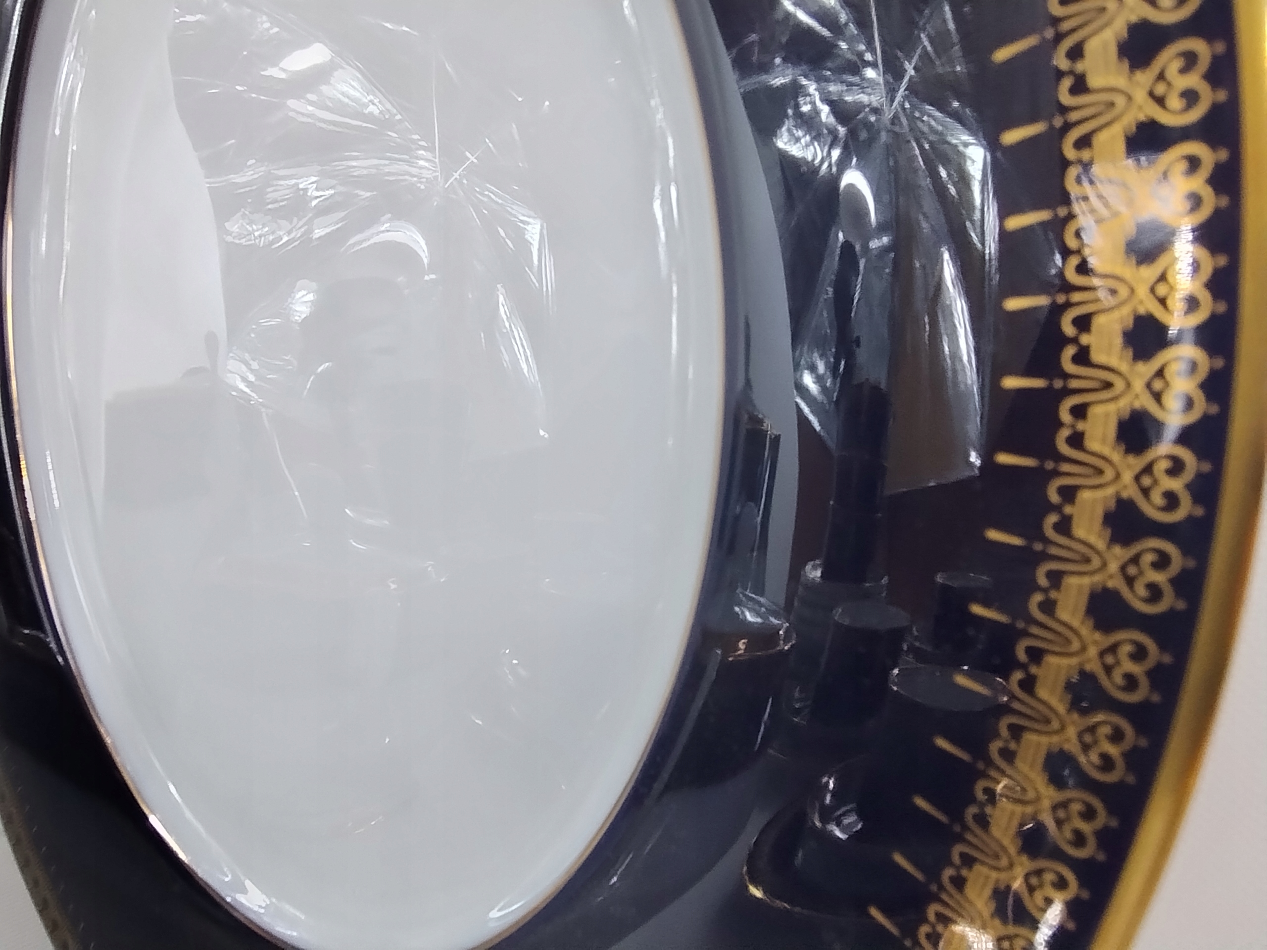 Красивый сервиз из белого фарфора высочайшего качества. Богато украшен золотом и кобальтом.