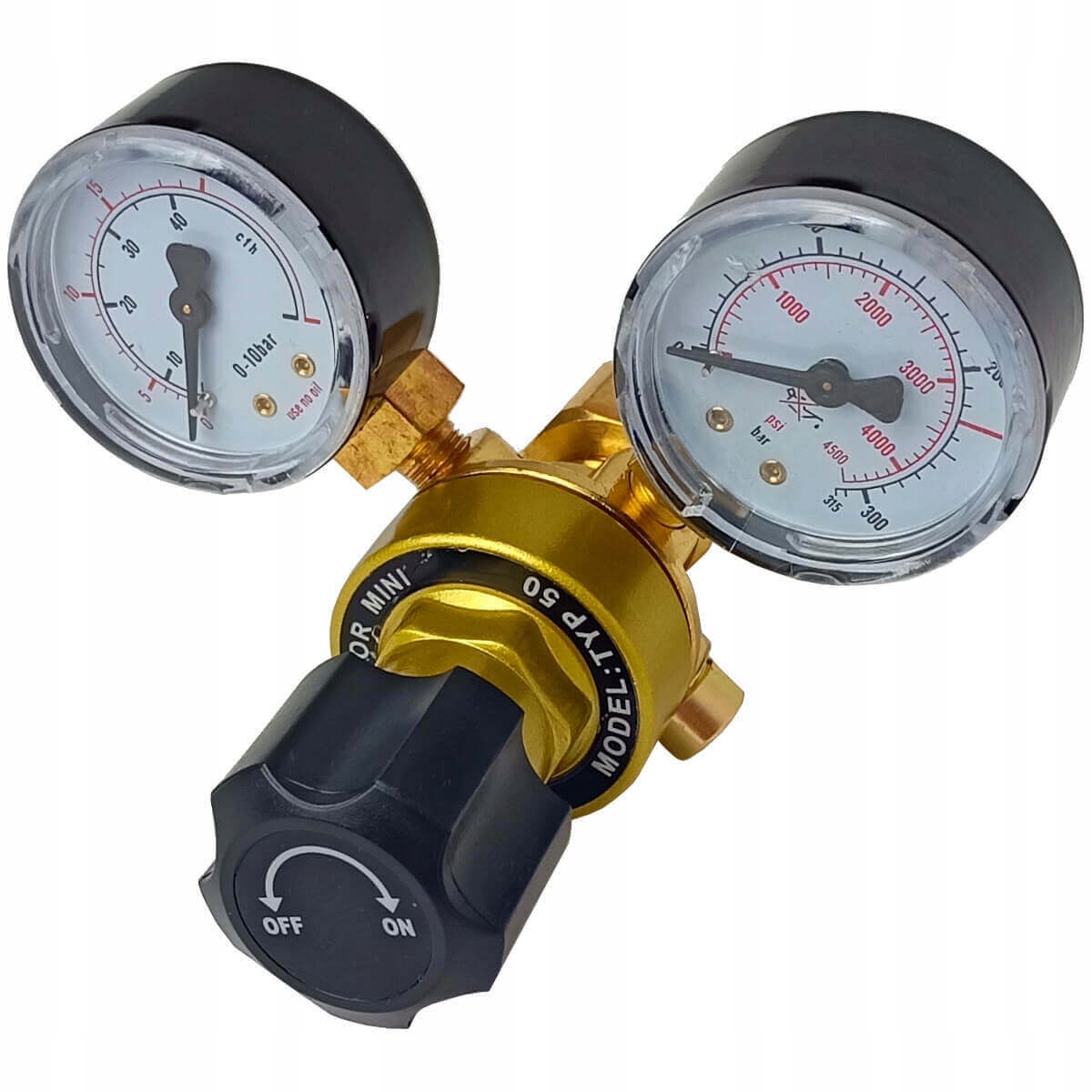 Прозрачный щит давления позволяет считывать уровень давления в цилиндре. На втором датке давления мы можем прочитать давление на выходе. Благодаря этому решению вы можете легко оценить, когда CO2 заканчивается. Диаметр резьбы на розетке составляет 1/8 дюйма (внутренняя потока).