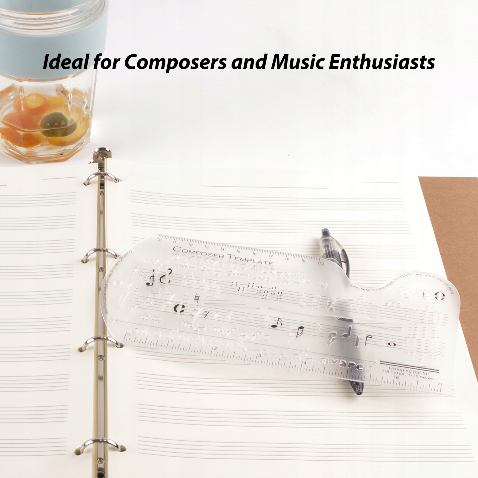 1. 【Комфортный и всеобъемлющий】: Наш пять человек правителя и правитель персонала живописи стремится удовлетворить все ваши музыкальные потребности. Он включает в себя широкий спектр обычно используемых музыкальных символов, включая серийные номера, ключевые сигнатуры, ритмы, склеивание, случайные и различные другие линии. Благодаря этому правителю у вас будет все необходимое для создания профессиональных заметок.