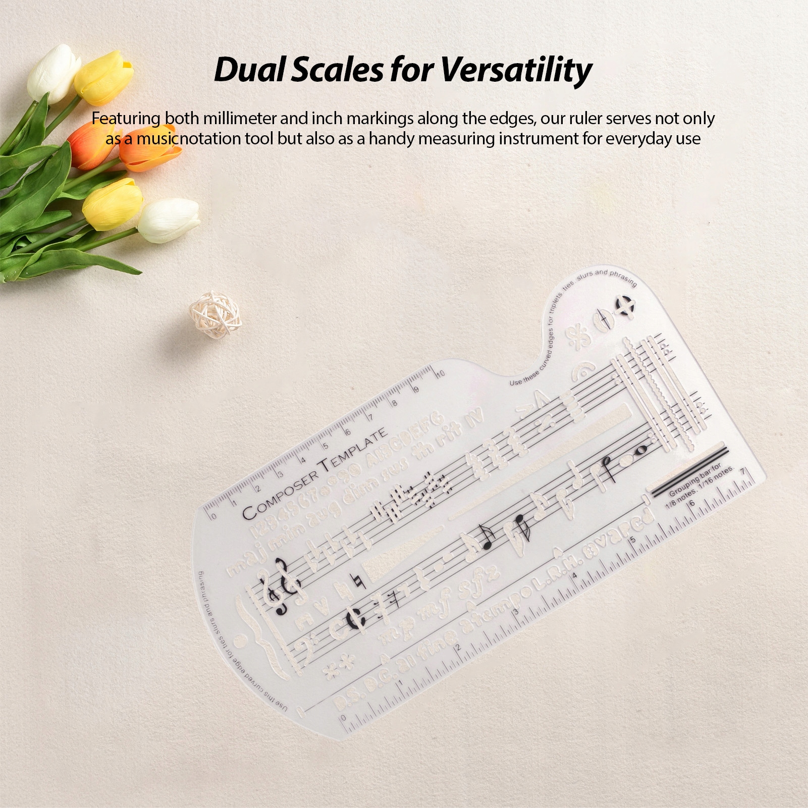 3. 【Двойные масштабы для универсальности】: оснащены как миллиметрами, так и знаками дюйма вдоль краев, наш правитель служит не только в качестве инструмента для музыкальных обозначений, но и в качестве полезного устройства для повседневного использования. Независимо от того, хотите ли вы измерить небольшие расстояния или сделать простые расчеты, наша линия была бы защищена.