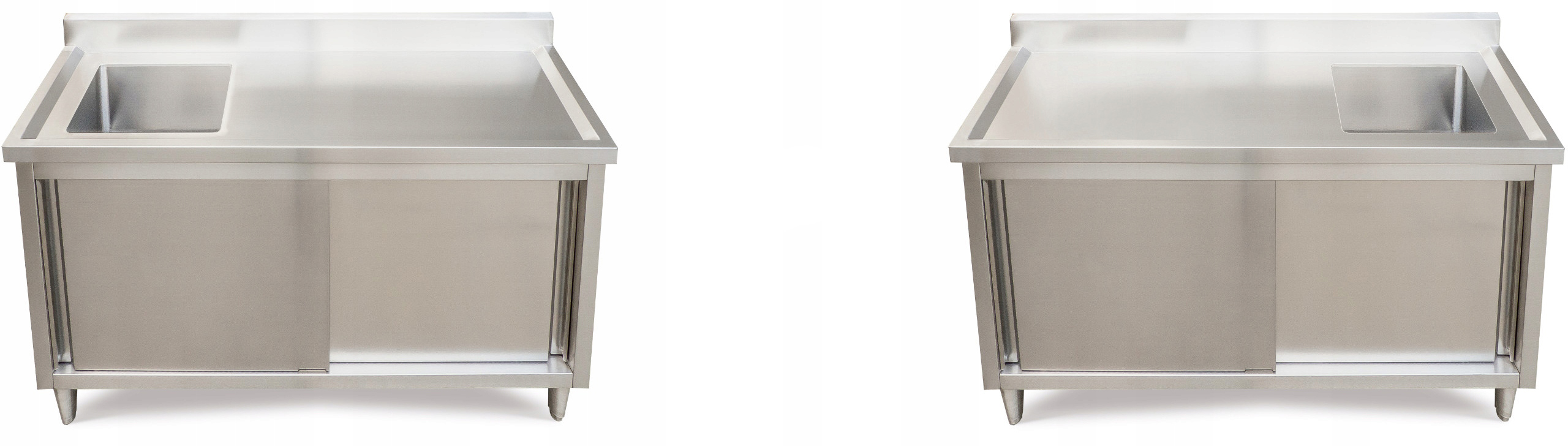 Рабочий стол, раковина (бассейн), шкаф с защитной кромкой на стенка из кислотостойкой нержавеющей стали INOX, закрытая раздвижными дверцами, рабочий стол с раковиной (бассейн)
