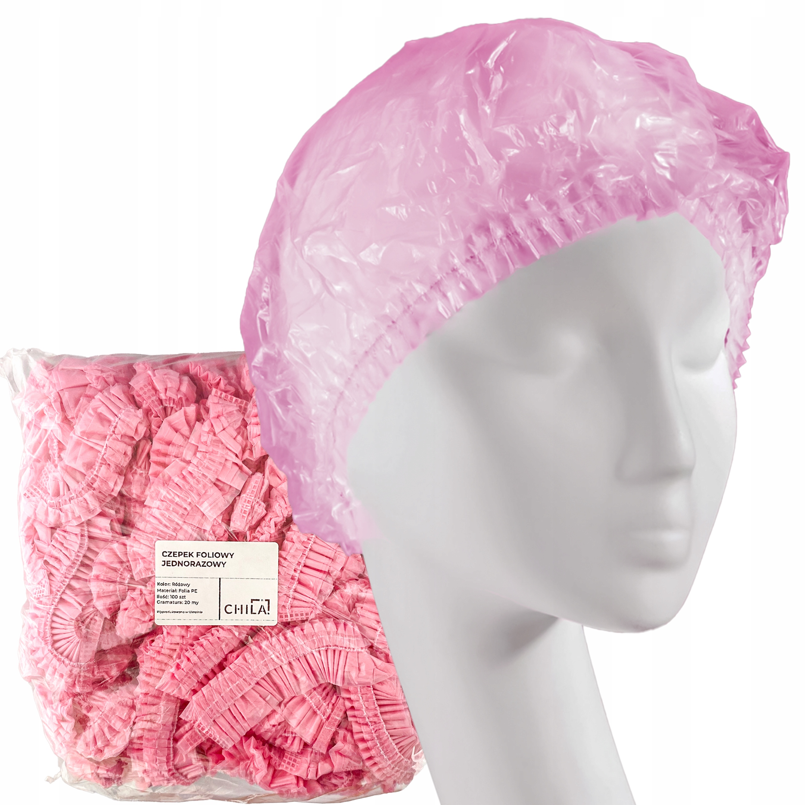 ШАПОЧКИ ШАПОЧКА ФОЛЬГОВАНА З ГУМКОЮ ОДНОРАЗОВА ТИПУ CLIP РОЖЕВИЙ CHILA - 100 ШТ