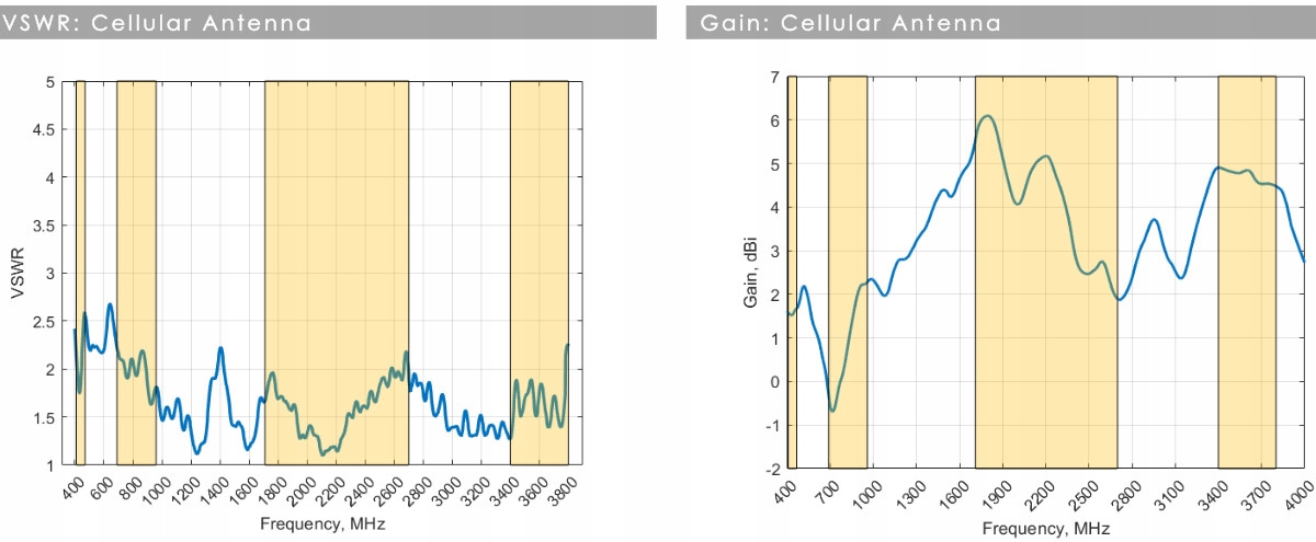 - Продуманная конструкция декоррелированных антенн обеспечивает превосходную производительность MIMO в диапазонах сотовой связи
