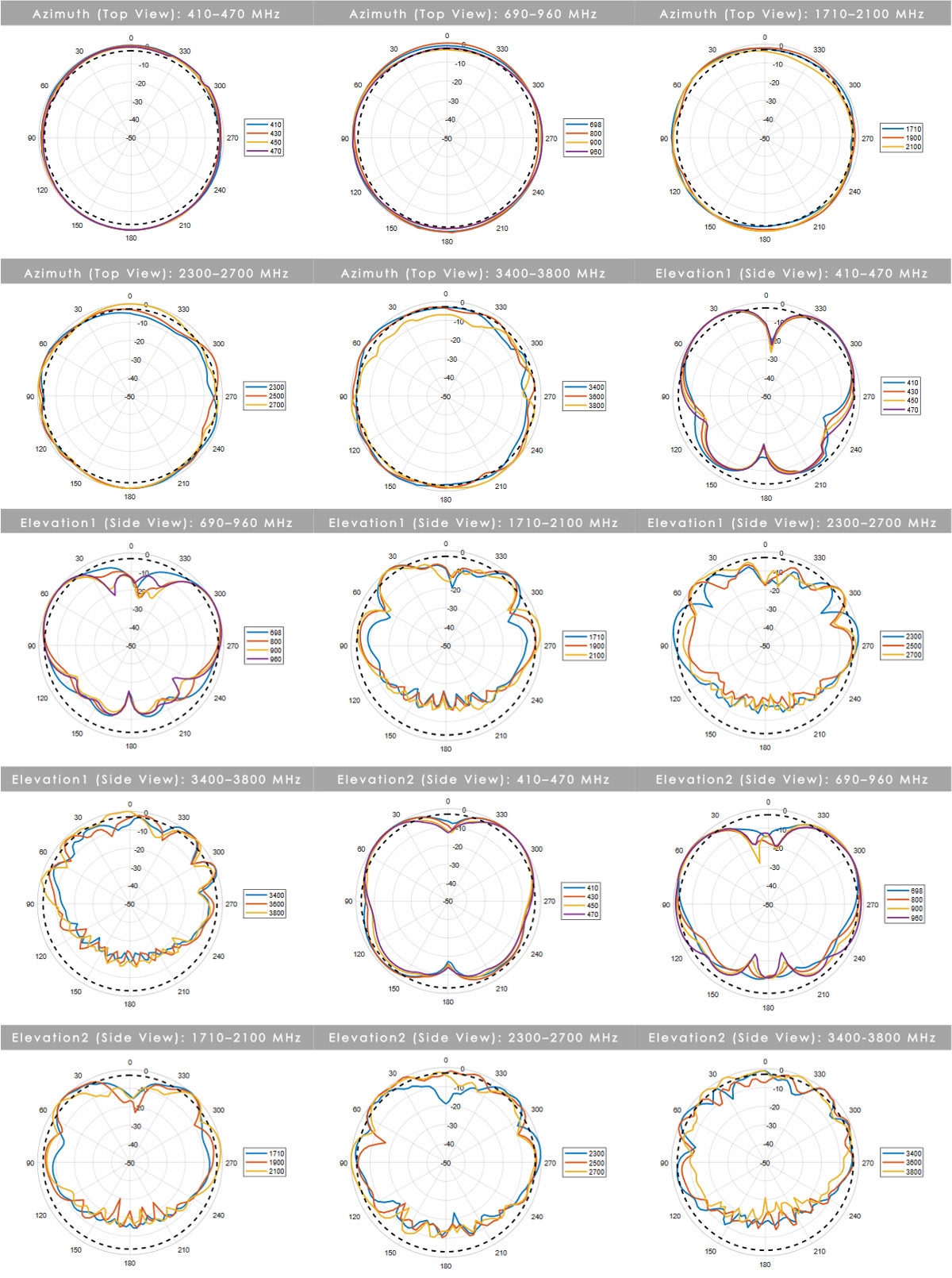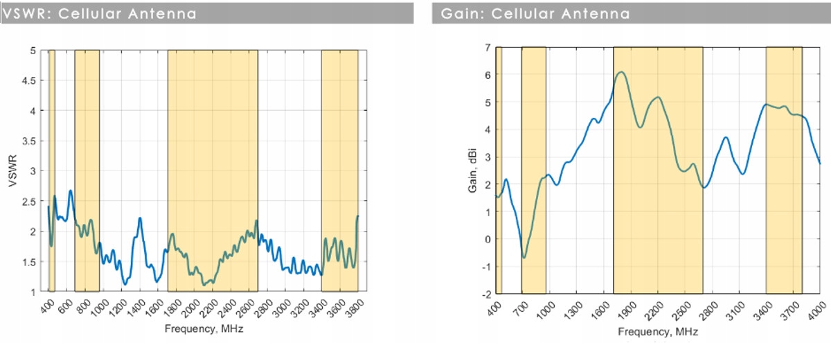 5,8 дБи — пиковое усиление во всех диапазонах 410–3800 МГц,