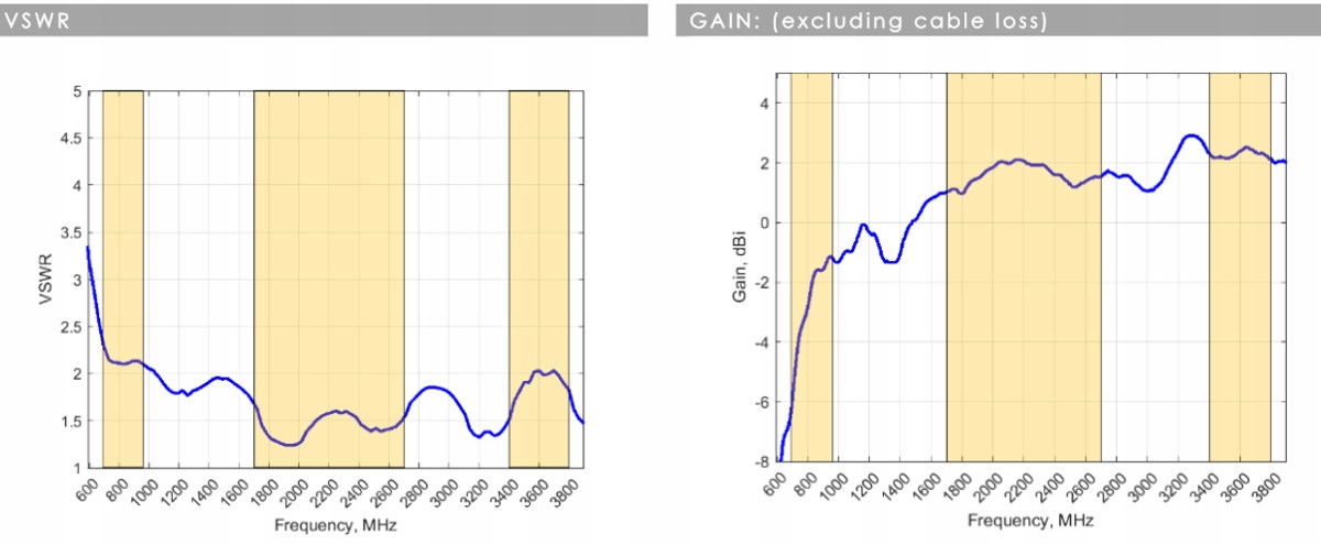 2 дБи — это пиковое усиление во всех диапазонах от 698 до 3800 МГц