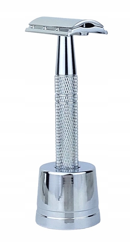 Традиционная металлическая бритва с лезвиями MAG-S на подставке