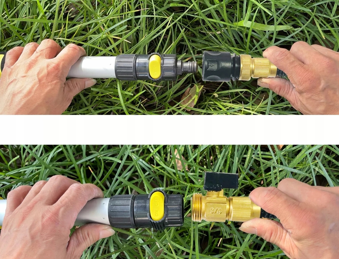 В нижней части кисти имеется клапан для СОЕДИНЕНИЙ ВОДЫ, которая, проходя через телескопическую конструкцию, попадает непосредственно через щетину щетки на панели