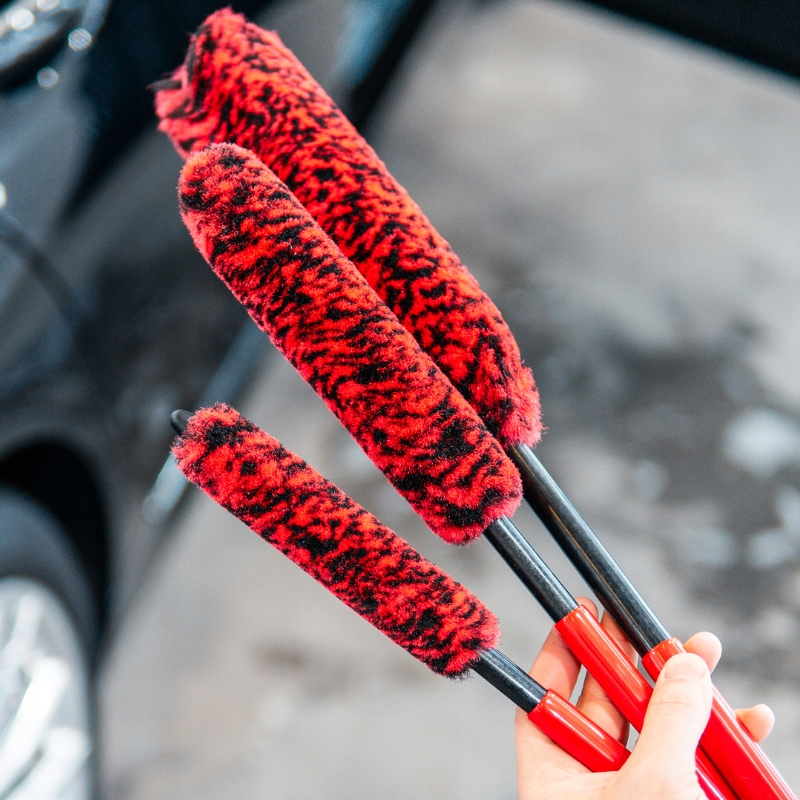 ✔️ Набор деликатных щеток из синтетической шерсти высокой плотности, благодаря которым можно легко и безопасно очистить практически любой тип/конструкцию алюминиевых дисков. .