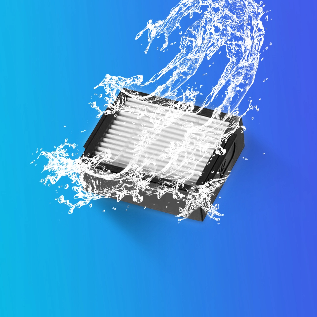 Его задача — фильтровать воздух, проходящий через робота, сохраняя при этом все мельчайшие примеси, такие как пыль, волосы, аллергены, клещи и т. д.