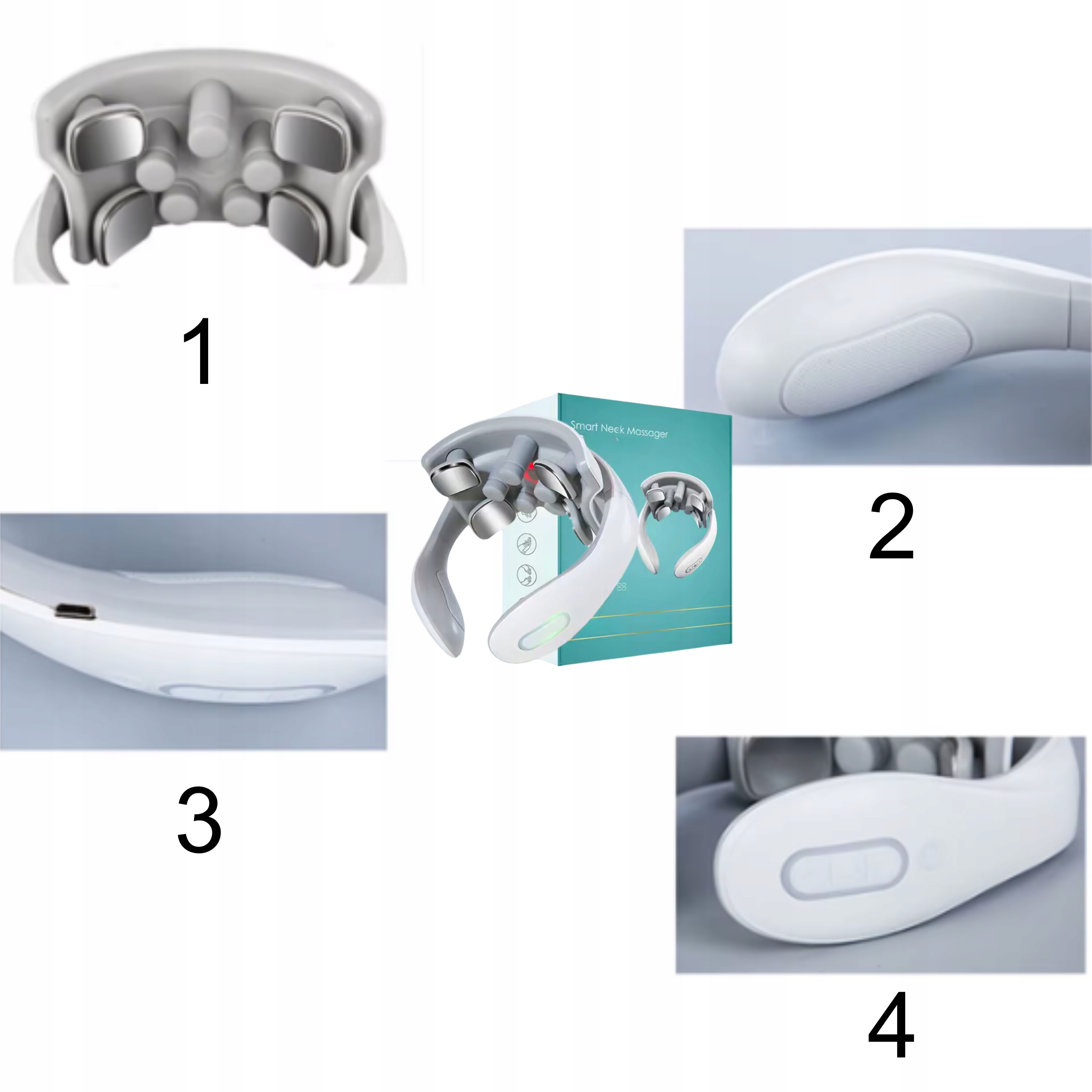 1⃣ массажные головки и электроды Tens - внутренняя часть массажа содержит 9 360 ° массажирующих голов и электродов, которые обеспечивают точную стимуляцию мышц шеи и шеи. Благодаря этому пользователь может насладиться расслабляющим и уменьшающим напряжением. Силиконовые подушки уменьшают давление на шею и обеспечивают лучшее соответствие форме корпуса. Благодаря этому устройство беспроводное и может использоваться в любом месте. Включает быструю и удобную адаптацию массажа к индивидуальным потребностям