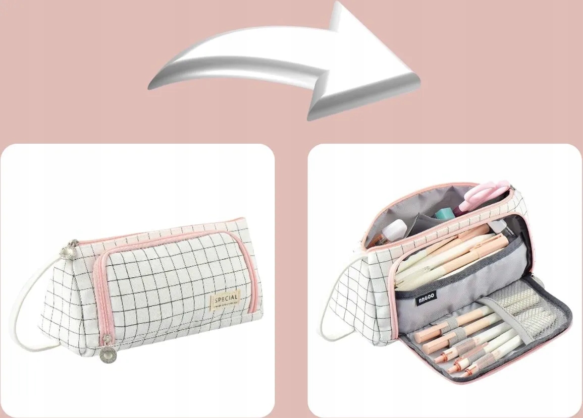 Этот карандаш -это не только практическое решение для всех школьных аксессуаров, но и стильное дополнение к рюкзаку каждого ученика. его элегантный дизайн с модным клетчатым мотивом и розовыми ползунками по вкусу как младших, так и старших учеников. Этот практическое и просторное карандаш -это не только место для ручек -хорошо -организованный саше, который будет размещать все необходимое каждый день. Эстетическая отделка и пастель розовый клетчатый цвет, , что карандаш выделяется среди среди классических моделей отлично как для школьного рюкзака, так и на столе.