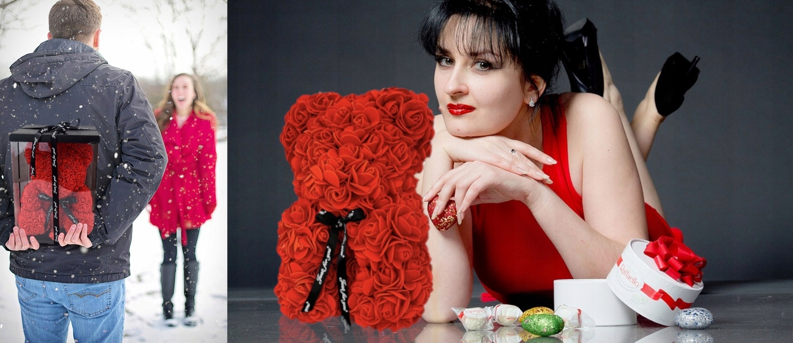 МИШКА С РОЗАМИ В ПОДАРОК НА ДЕНЬ ВАЛЕНТИНА 25 СМ