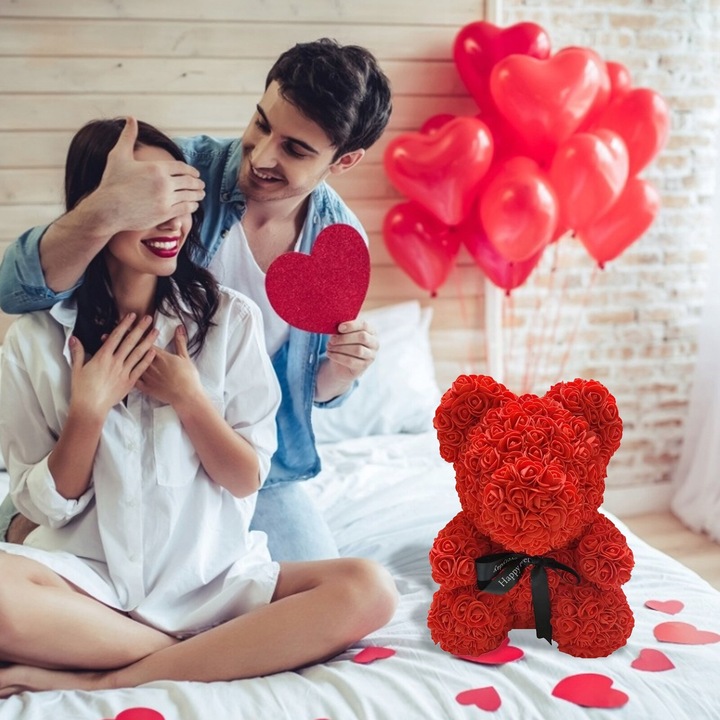 Мишка Тедди в коробке из красных роз, высотой 25 см. Это идеальный подарок на День святого Валентина, дни рождения, помолвки и другие случаи.