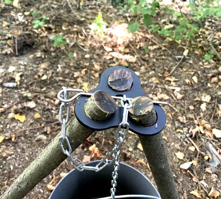 Используя этот гаджет, вы можете построить штатив над костром, используя имеющиеся в лесу палки, ветки.