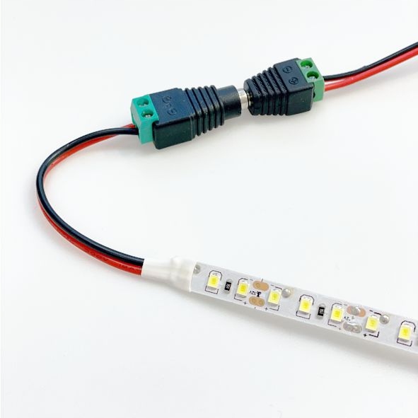 Разъем постоянного тока размером 2,1/5,5 с кабельными зажимами.