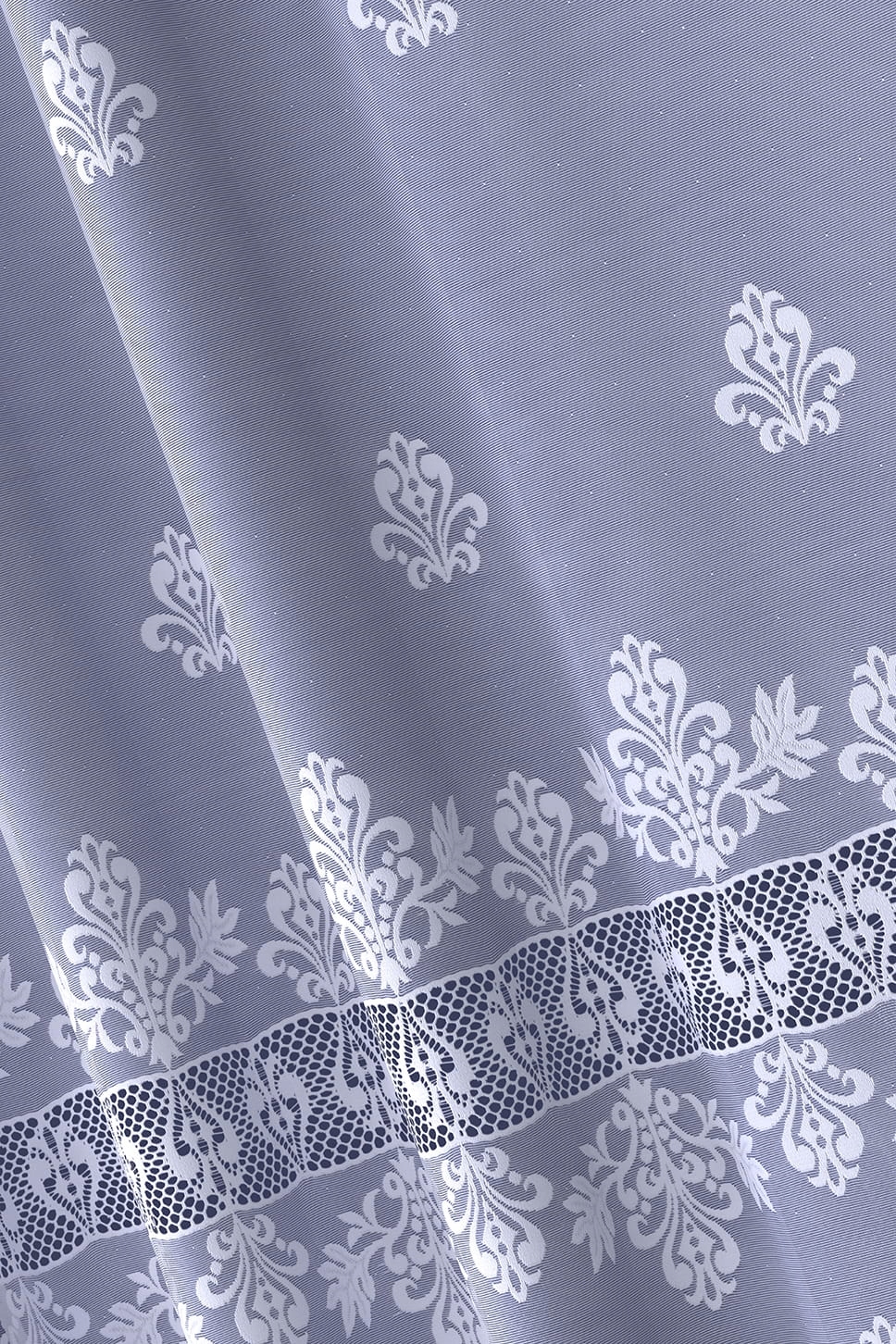 Штора жаккардовая, высота 250 см. В нижней части она украшена красивым орнаментом, а украшения по всей поверхности придают шторе элегантность. Изготовлен из высококачественной, плотной жаккардовой пряжи. Плотный, эстетичный узор – эффектное оформление окна. Лучше всего занавеска выглядит со складками в соотношении 1:2. После стирки не требует глажки. Красивый белый цвет.