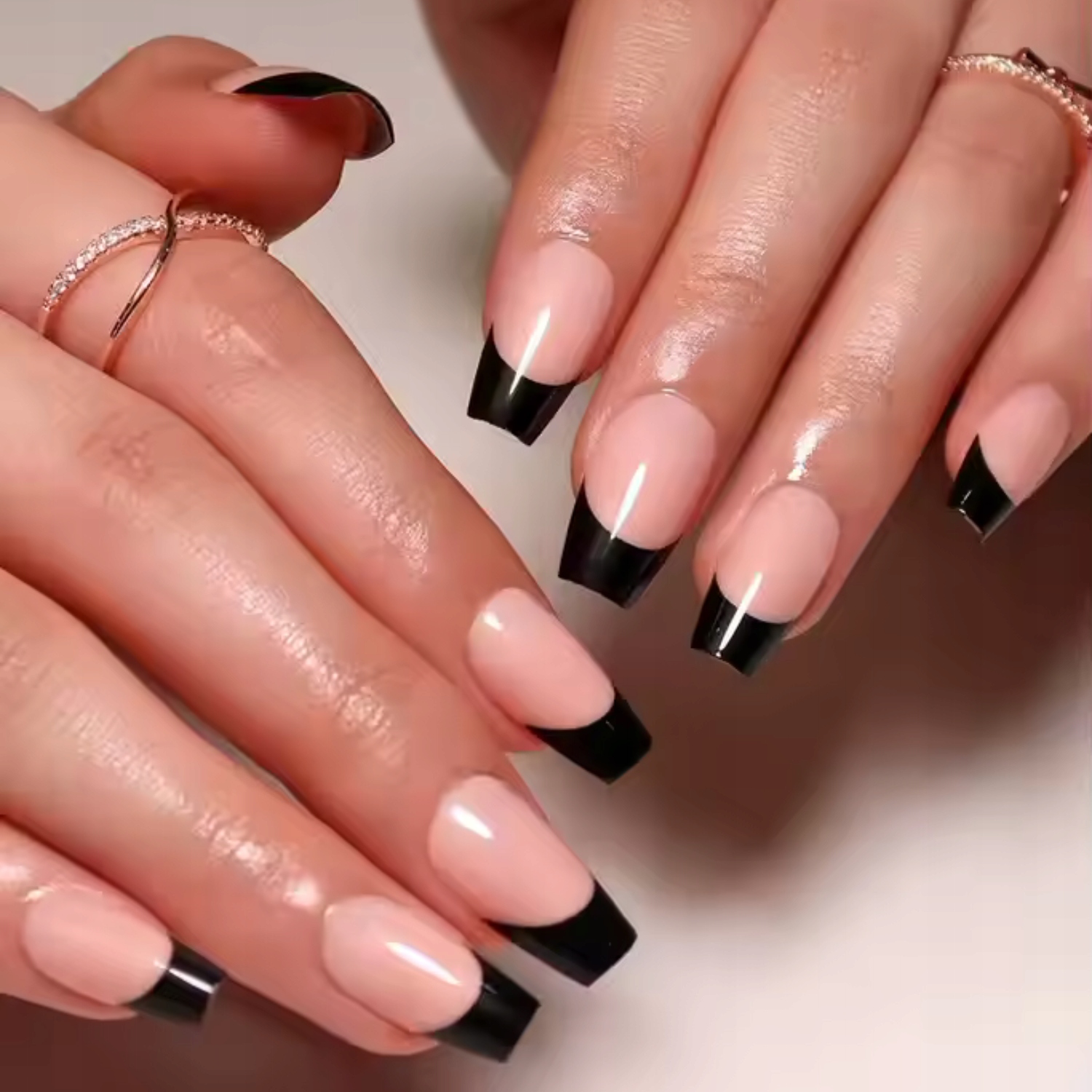 Ногти с ногтями. Обнаженные черные французские розовые самоодгезивные