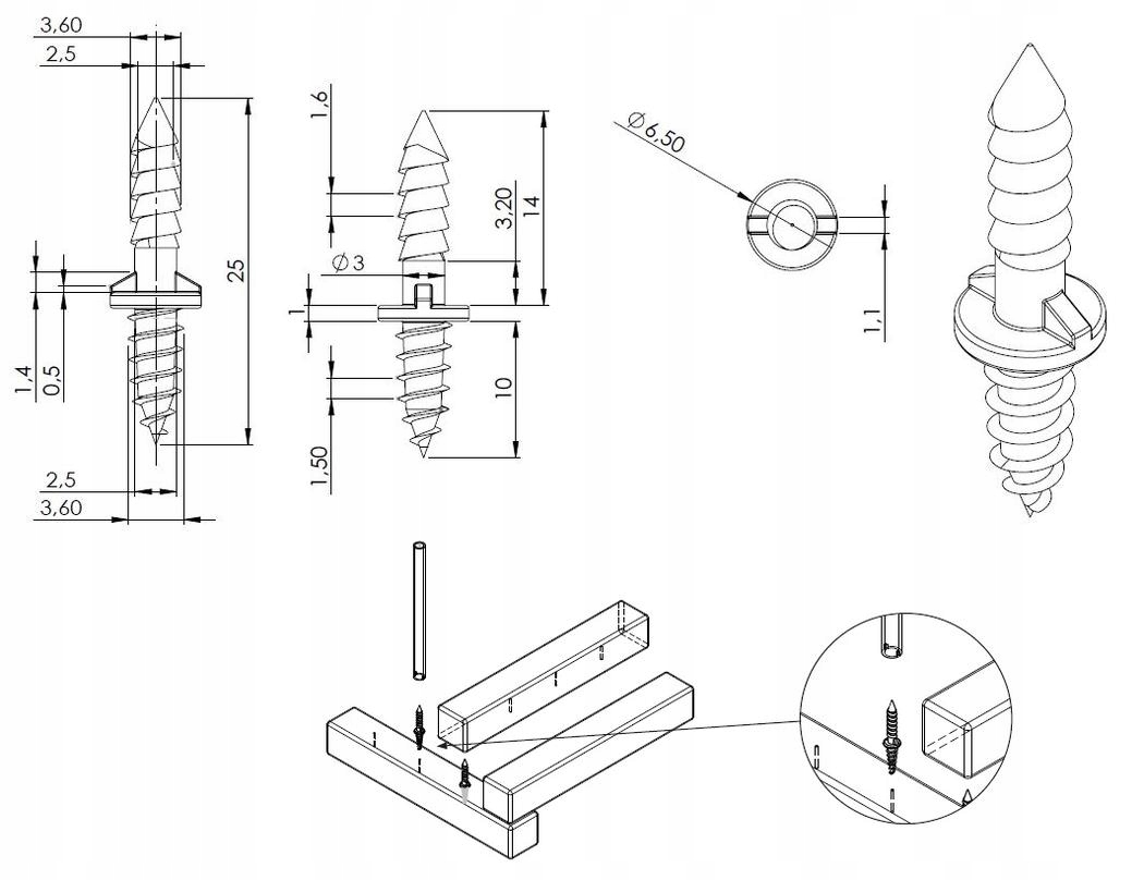 - Размеры: фи3,5x10x14 мм