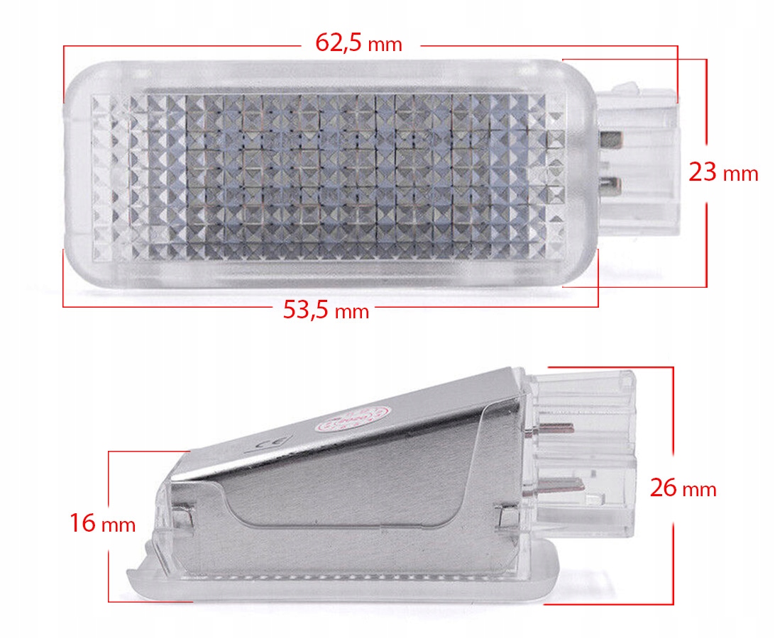 - LED: 18 ПК. : 53,5 мм*23 мм*26 мм