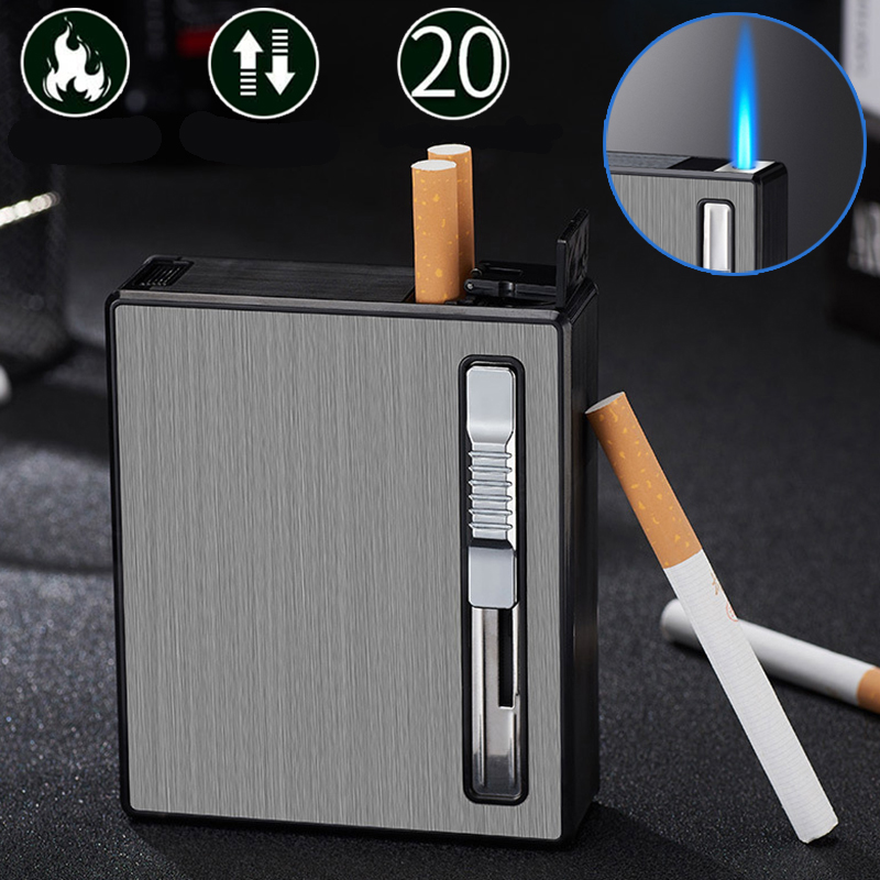 Сигареты с более легким, могут вместить 20 сигарет, цинк сплав, серый