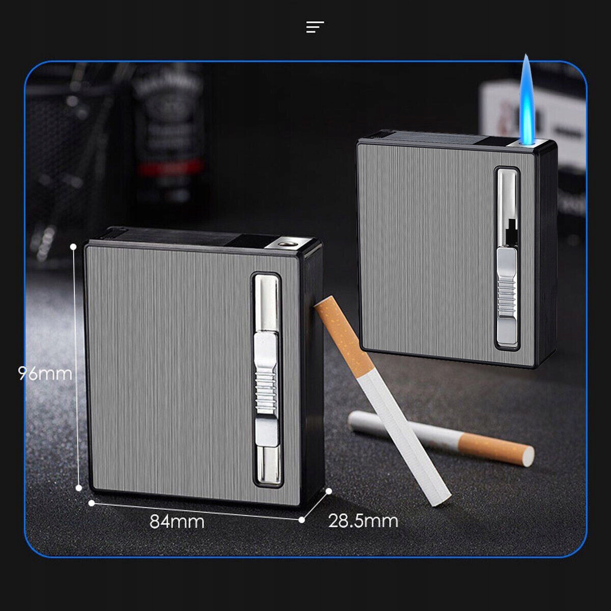 ⚫ небольшой размер ---- размер корпуса сигарет составляет всего 96 х 84 х 28,5 мм, он может поглощать 18-20 сигарет (в зависимости от размера сигареты). Идеальный размер и компактный внешний вид, его можно легко положить в карман.