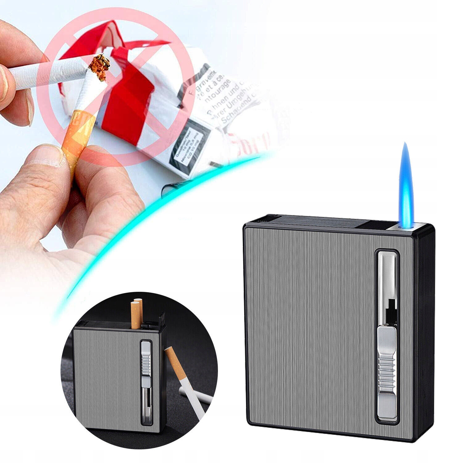 ⚫ 2 в 1 легче ---- Этот электрический воспламенитель состоит из цинкового материала и процесса вытягивания проводов. Это не только электронная зажигалка, но и сигаретный чехол, идеальный подарок для курильщиков
