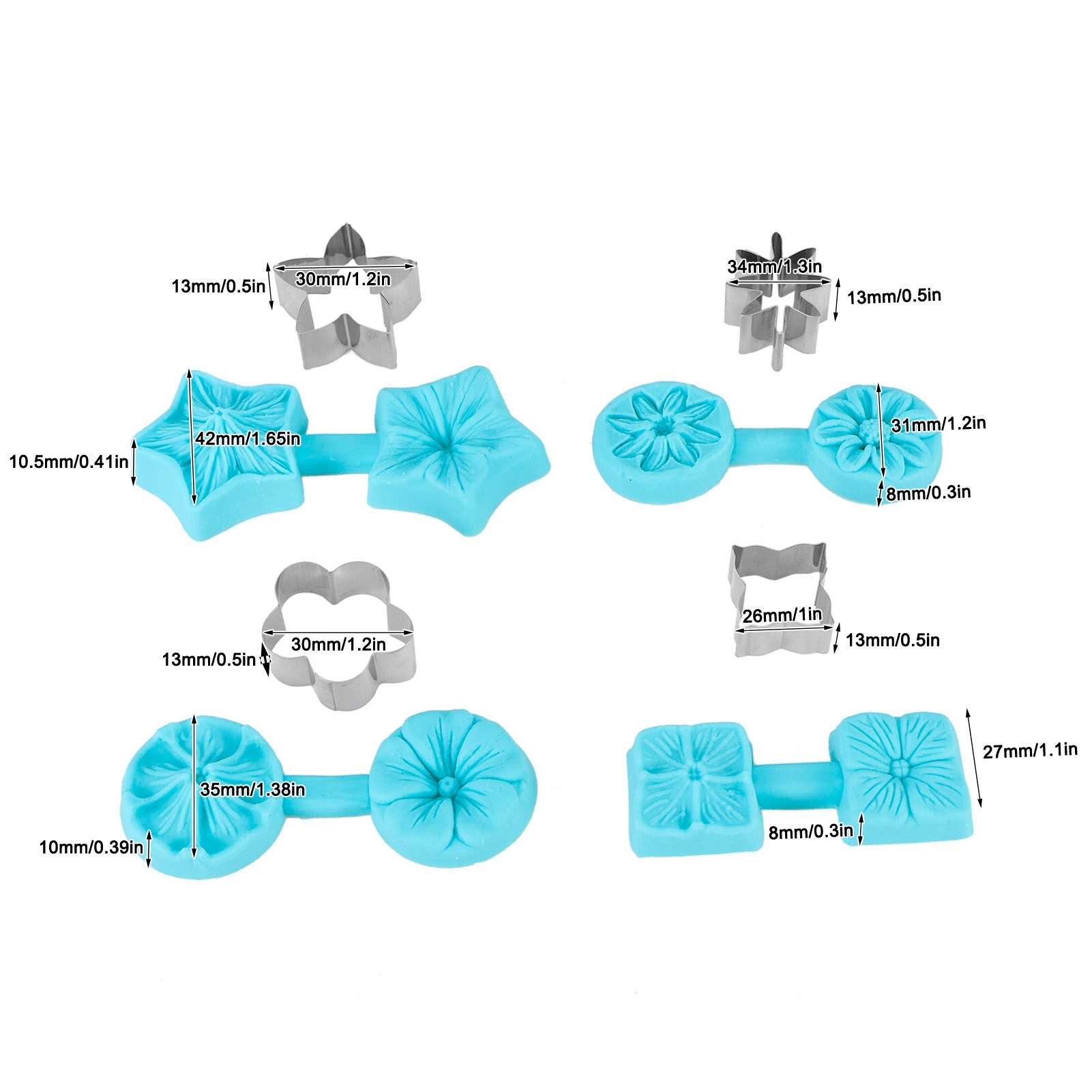 1. С 4 цветочными узорами и 4 ножницами вы можете легко производить десерты в форме гортензии, вишни, Daisy и Petunia.
