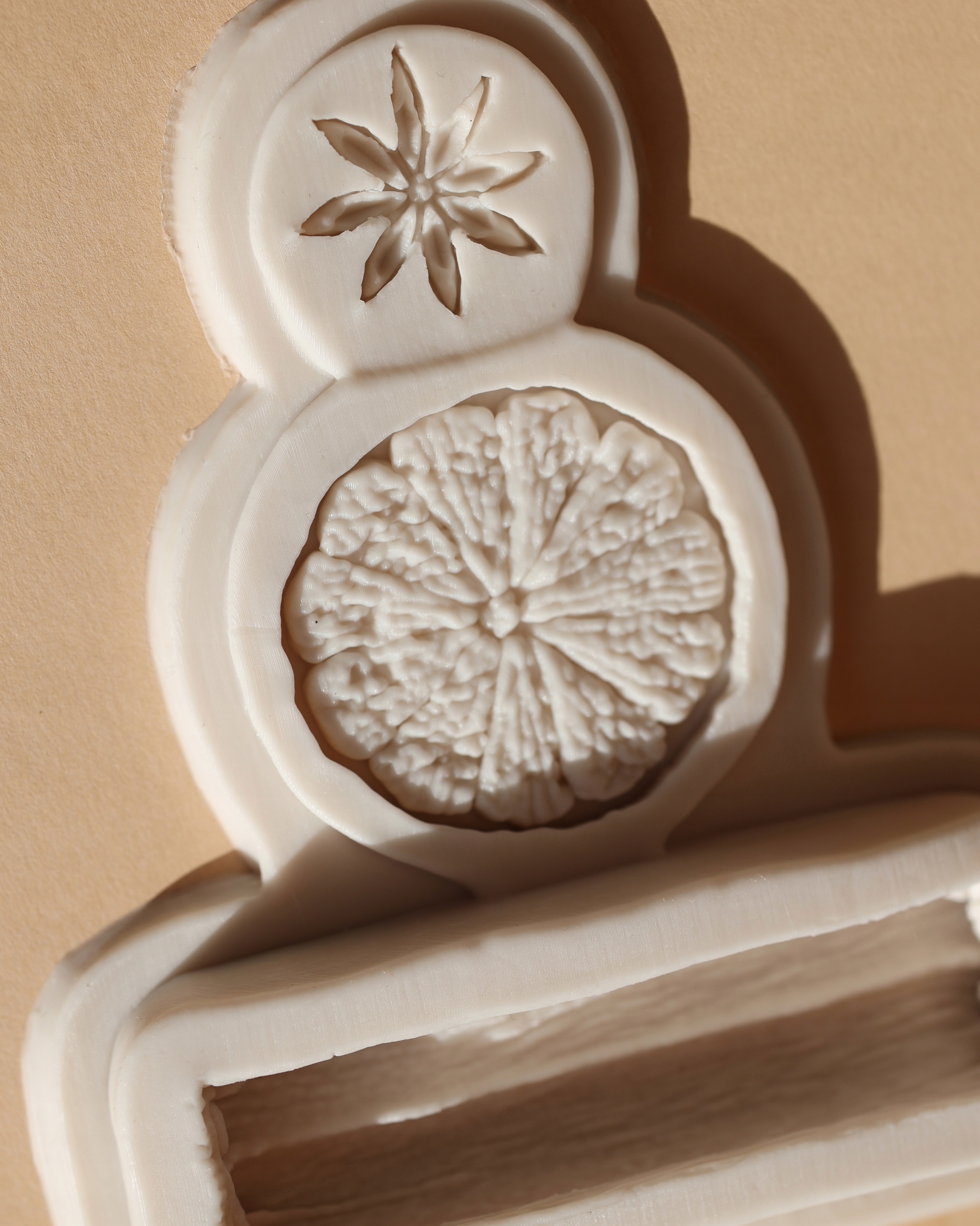 Форма АНИС, КОРИЦА, АПЕЛЬСИН идеальна для приготовления воска или декоративных свечей к праздникам.