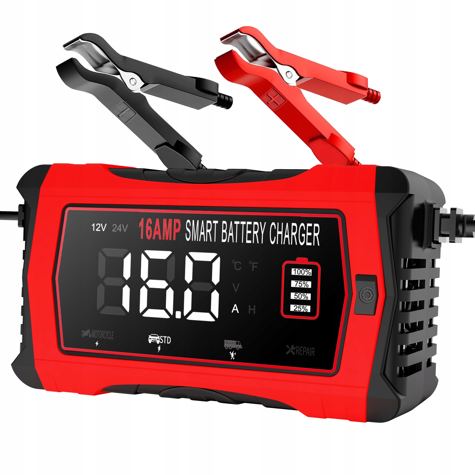 Портативные автомобильные аккумуляторы Зарядное устройство 16 A 24 В/12 В, интеллектуальное зарядное устройство с аккумулятором LifePO4, зарядное устройство для технического обслуживания с температурной компенсацией для мотоциклов, лодок, автомобилей ATV и травяных косилок