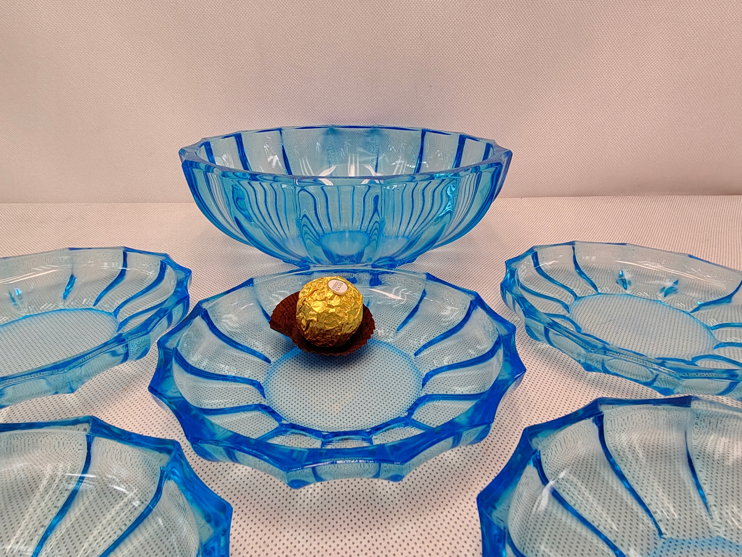 Покупая «Синий стеклянный десертный набор.», вы можете быть уверены, что данное изделие из каталога «Тарелки и тарелки» вы получите через 5-7 дней после оплаты. Товар будет доставлен из Европы, проверен на целостность, иметь европейское качество.