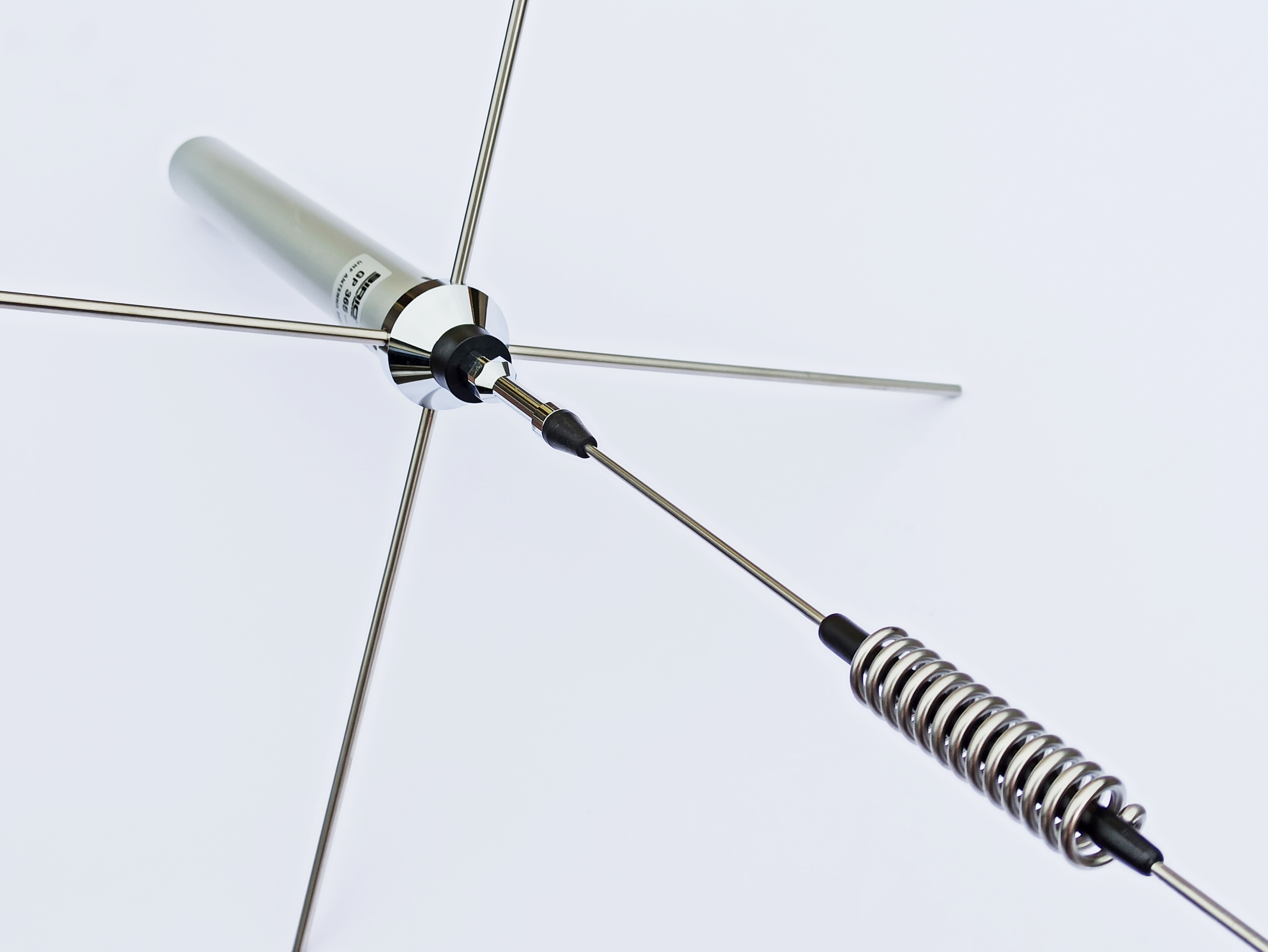 Всенаправленная базовая антенна конструкции 1/4λ+1/2λ. Настраивается антенна на полезную частоту путем регулировки длины двух ее элементов согласно прилагаемым таблицам настройки. Благодаря этому можно очень точно настроить антенну.