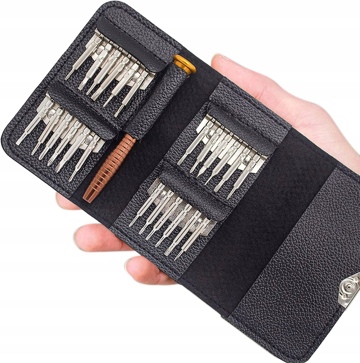 - 25 элементов (24 отвертки + ручка) в элегантном футляре в форме кошелька