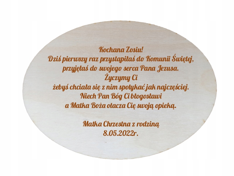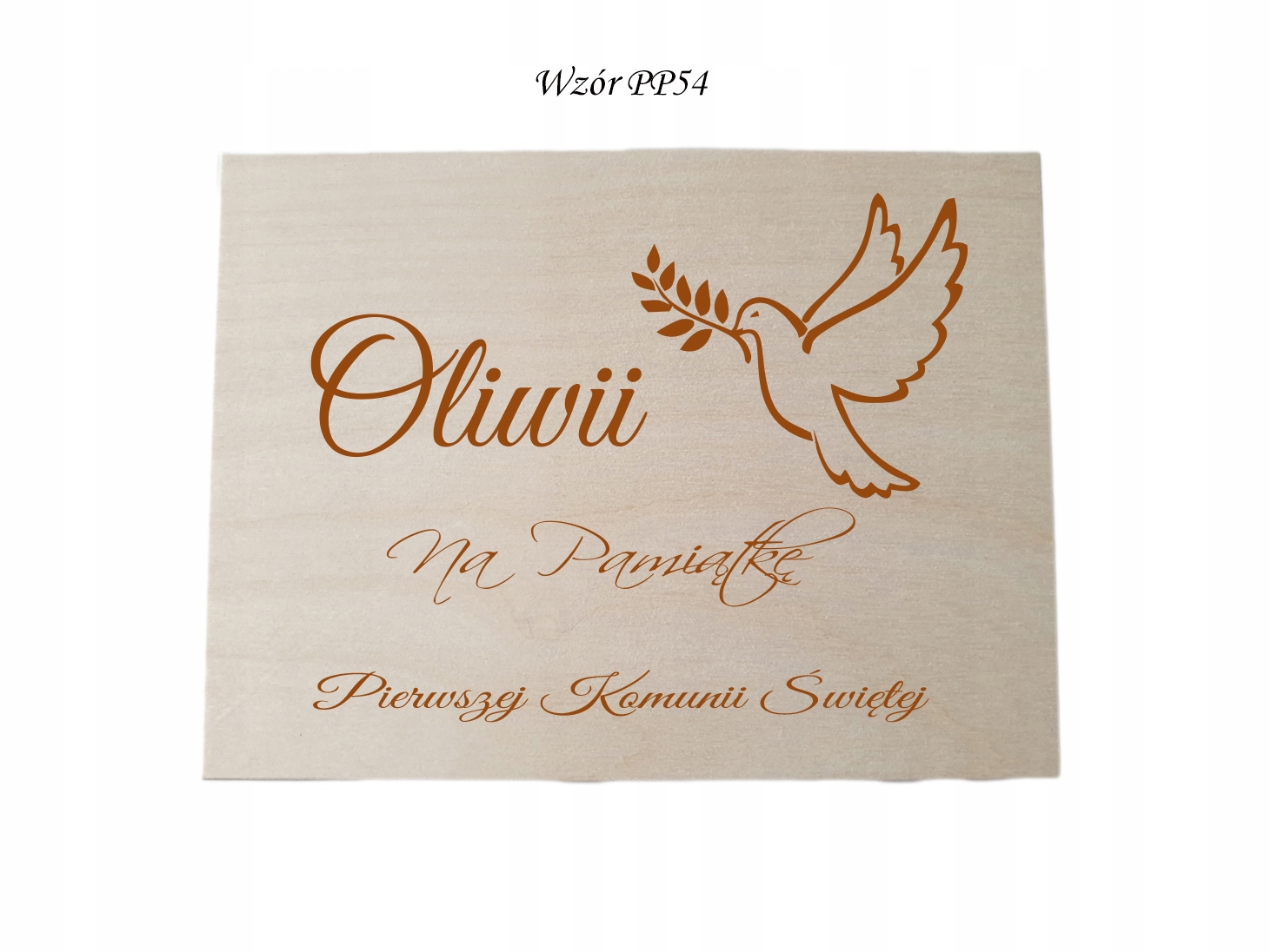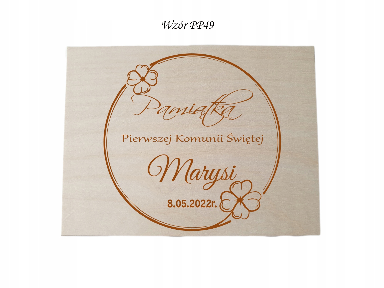 Копилка – прекрасный подарок, который можно подарить ребенку и его родителям по случаю Первого Причастия. Деревянная закрытая открытка – это оригинальная форма пожеланий и прекрасный сувенир на будущее. Кейс закрывается на магнит, чтобы содержимое не высыпалось. Удобная и сделанная со вкусом коробочка идеально подойдет для выражения пожеланий в день церемонии. Простая форма дополнена персонализированной гравировкой на крышке и пожеланиями внутри коробки. Коробку можно наполнить купюрами или другим небольшим подарком, например, медальоном, изображением святого, ангела.