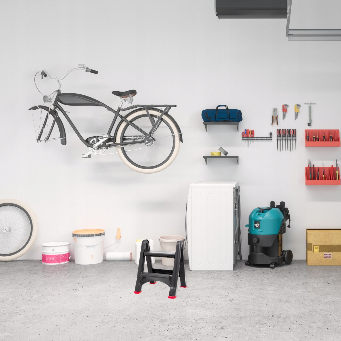 Вам не нужно подниматься высоко - всего один шаг, чтобы получить стабильную поддержку и удобно достигать большинства высоких мест дома или в гараже.