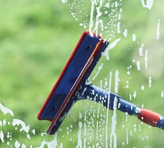 Наш очиститель окон с функциональной шваброй и телескопической палкой