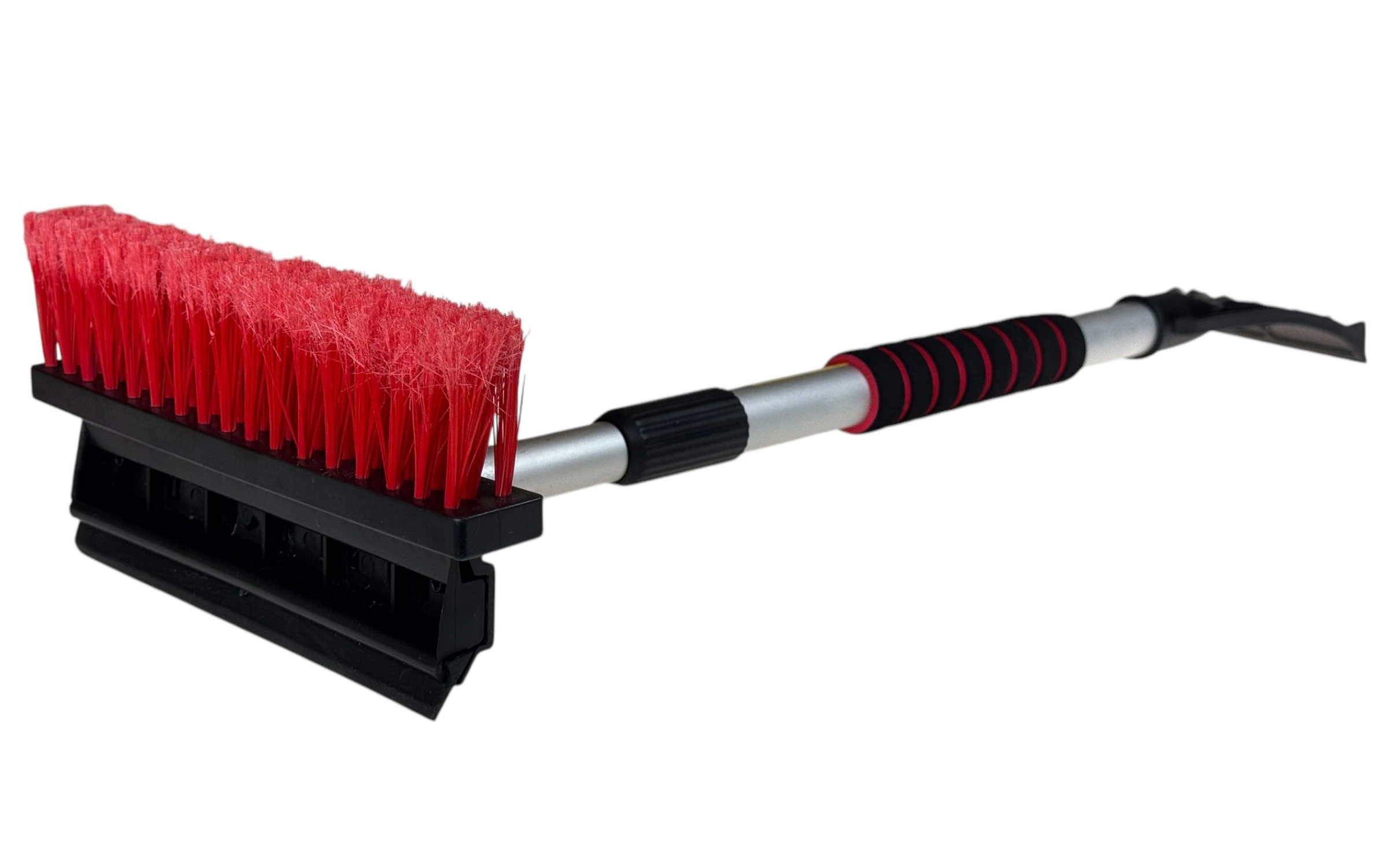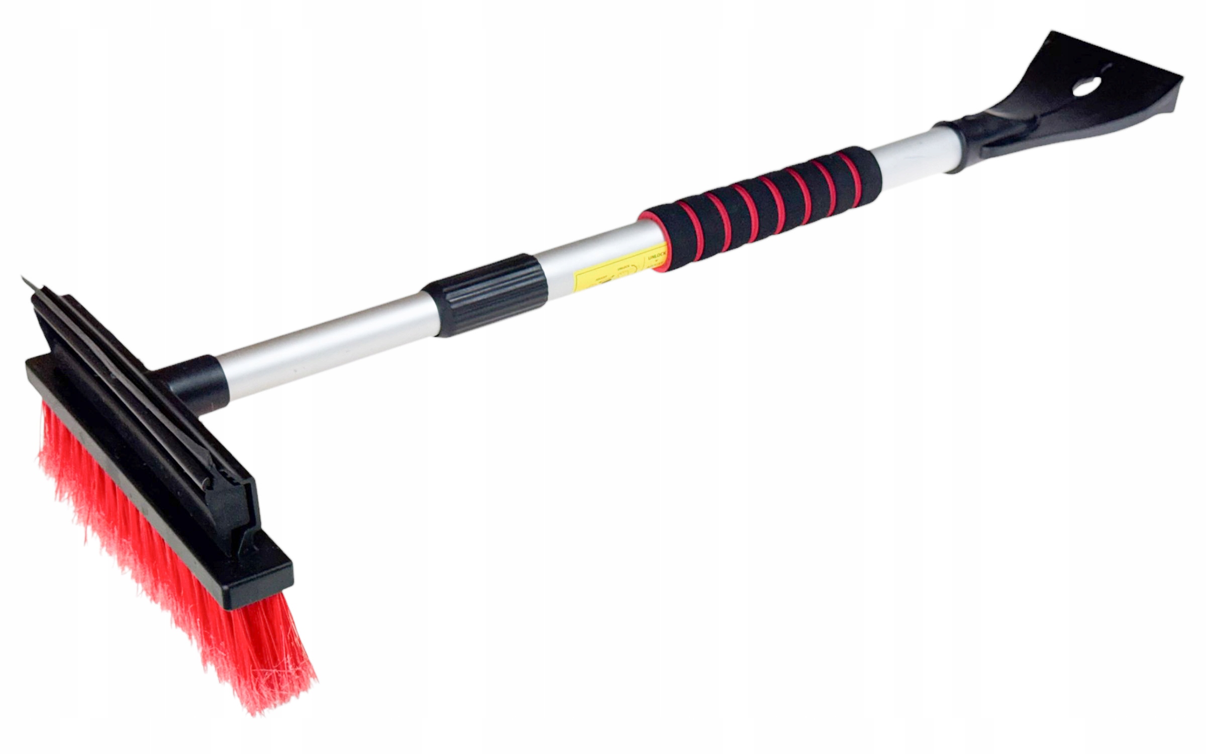 - щетка, установленная в конце скребка, обеспечивает быстрое удаление снега с более крупных поверхностей, таких как крыша, автомобиль. Благодаря телескопической ручке, можно отрегулировать длину инструмента, что облегчает достижение жестких мест.