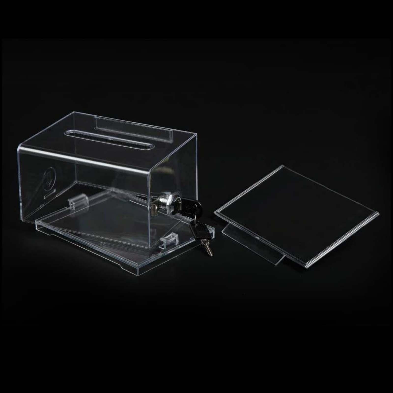 ПРОЗРАЧНАЯ АКРИЛОВАЯ КОРОБКА: Четкая конструкция обеспечивает полную видимость. содержимого внутри для удобного просмотра, защищая честность получения предложений или голосов.