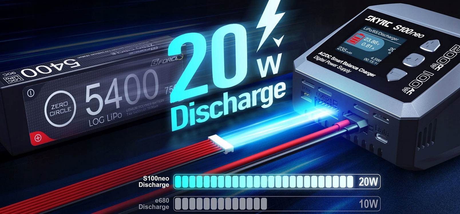 S100Neo, который заряжает ток до 12А, что является значительным прогрессом для энтузиастов моделей RC, которые ценят ключевую роль в зарядке. Превышение своего предшественника, E680, который достигает максимум 8A, S100NEO не только ускоряет процесс зарядки, но также обеспечивает более эффективный источник питания.