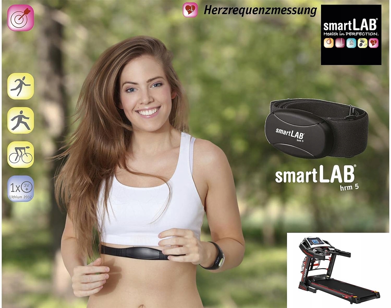 SmartLab HRM 5 D41460 монитор сердечного ритма IP67 Ant+ H2> - Регистрация данных в реальном времени b>: SmartLab HRM 5 измеряет частоту сердечных сокращений в качестве грудного пояса в реальном времени в ECG в режиме реального времени во время тренировок. Данные отправляются аналоговым аналогом -3 кГц аналогом для домашней фитнес -устройств,