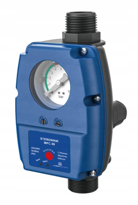 Электронное устройство для управления работой насоса, оснащенное маноможным давлением, указывающим на давление системы тока.